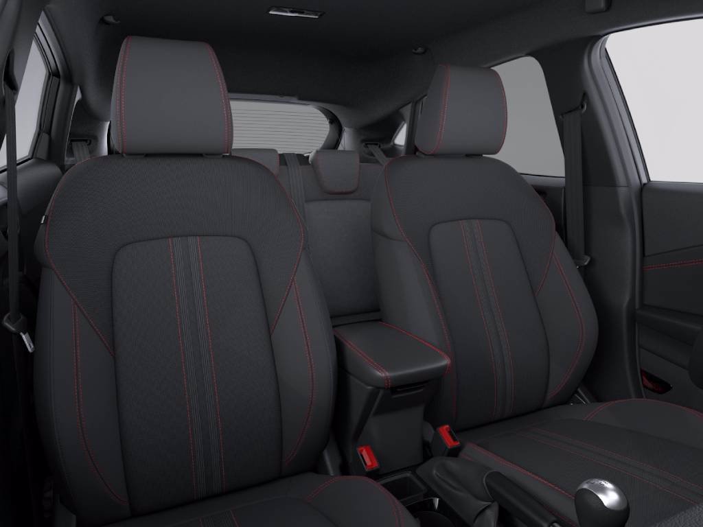 • Interni Sedili in tessuto nero con impunture rosse